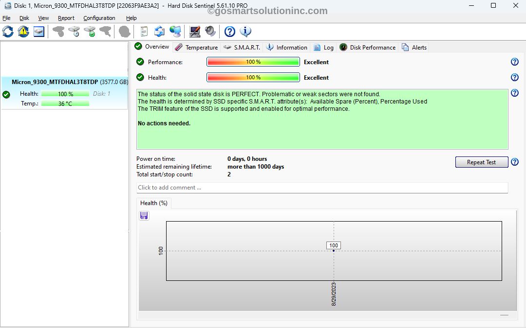 Zero written, 100% Health, only power on 2 times